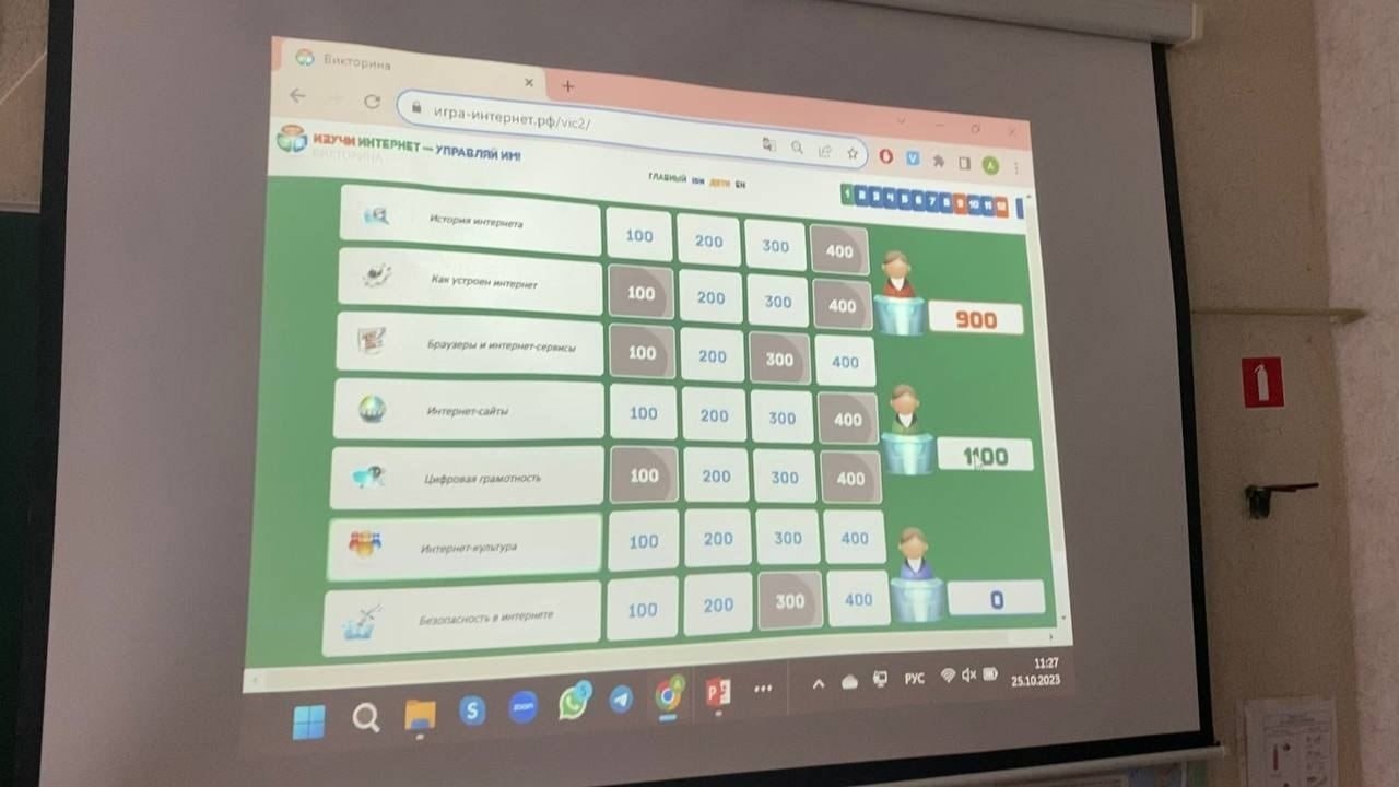 За теоретической частью последовала интерактивная викторина «Изучи интернет – управляй им»: ребята отвечали на вопросы об истории интернета, веб-сервисах, сайтах, интернет-культуре и кибербезопасности, а также проверяли свои навыки в области цифровой грамотности.